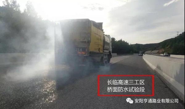 2018年5月24日,我(wǒ)(wǒ)公司長間年臨項目在項目經理張彥、項目副經理李蘇慶的帶領下(xià)橡膠改性瀝青同步碎拍飛石橋面防水試驗段獲得成功,正式開(kāi)始進行防水施工(gōng)。
